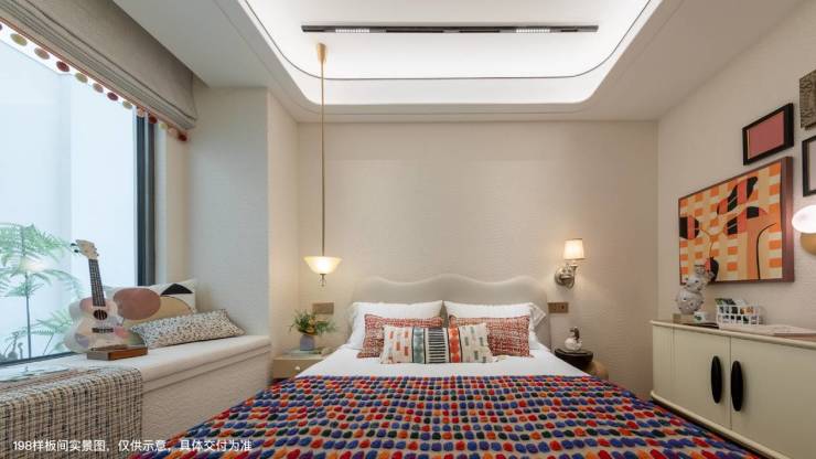 合理的空间布局,约6㎡的面积让可以灵动改造,可以是孩子的房间或者客房,满足三房需求,也可以打造成书房,也可以并入主卧做一个全套房设计,让主人拥有独立的衣帽间/化妆间,地面是实木复合地板同时有木质踢脚线交付,回型吊顶+抽槽设计搭配四周灯带,大尺度开窗明亮度高,飘窗设计延伸自然风景和生活情调,是放空思绪的静谧独处空间。