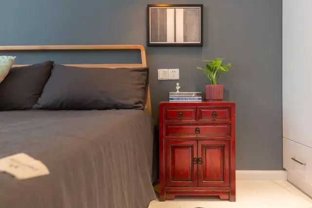 一眼望去,映入眼帘的便是一个砖红色老式床头柜