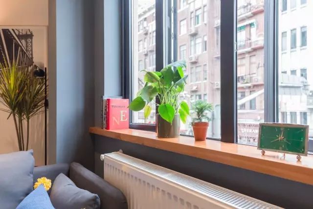 与角落处绿意形成的对比
