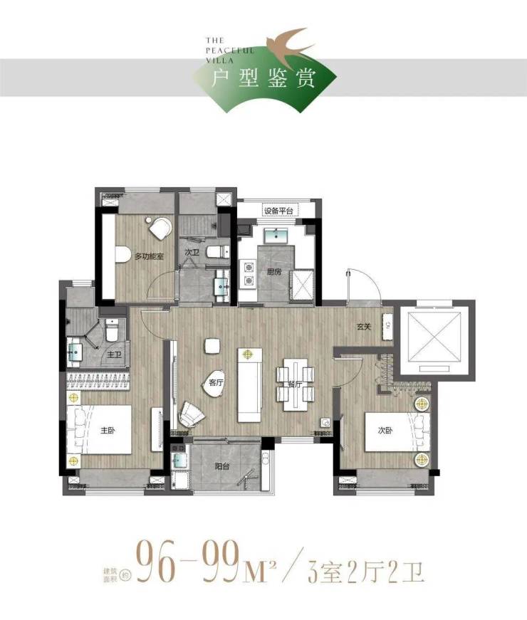 约96-99㎡3房户型,主卧和次卧双卧朝南,更享有一般大户型才有的大横厅设计,直接从观感上“扩容”。再加上约3米的室内层高,比起市面上主流的约2.8-2.9米,呈现了更强的空间感和尺度感。四开间朝南的超大面宽,引更多清风阳光入室。主卧套房设计,拥有独立卫浴,保障了私密。整体布局兼顾实用性和舒适性,避免了走道空间的浪费。