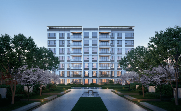 在密度上做减法,在景观上做加法。社区内通过“一横三纵、十字礼序、里弄组团”的空间布局,将景观与建筑完美融合,写意山石层叠的江南意境。
