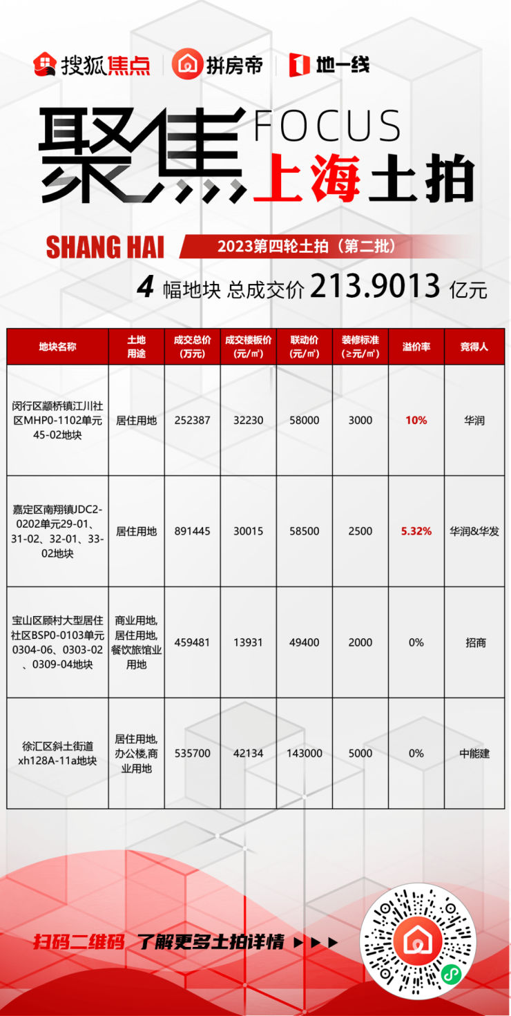 2023上海土拍收官战,4幅地揽金近214亿!华润连夺两幅热门地块!