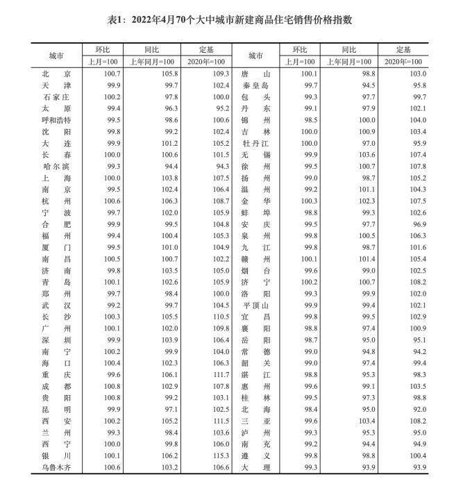 18日国家统计局公布的数据显示,2022年4月份,一二三线城市商品住宅销售价格环比总体呈降势、同比继续走低。70个大中城市中,新建商品住宅和二手住宅销售价格环比下降城市分别有47个和50个,比上月分别增加9个和5个。
